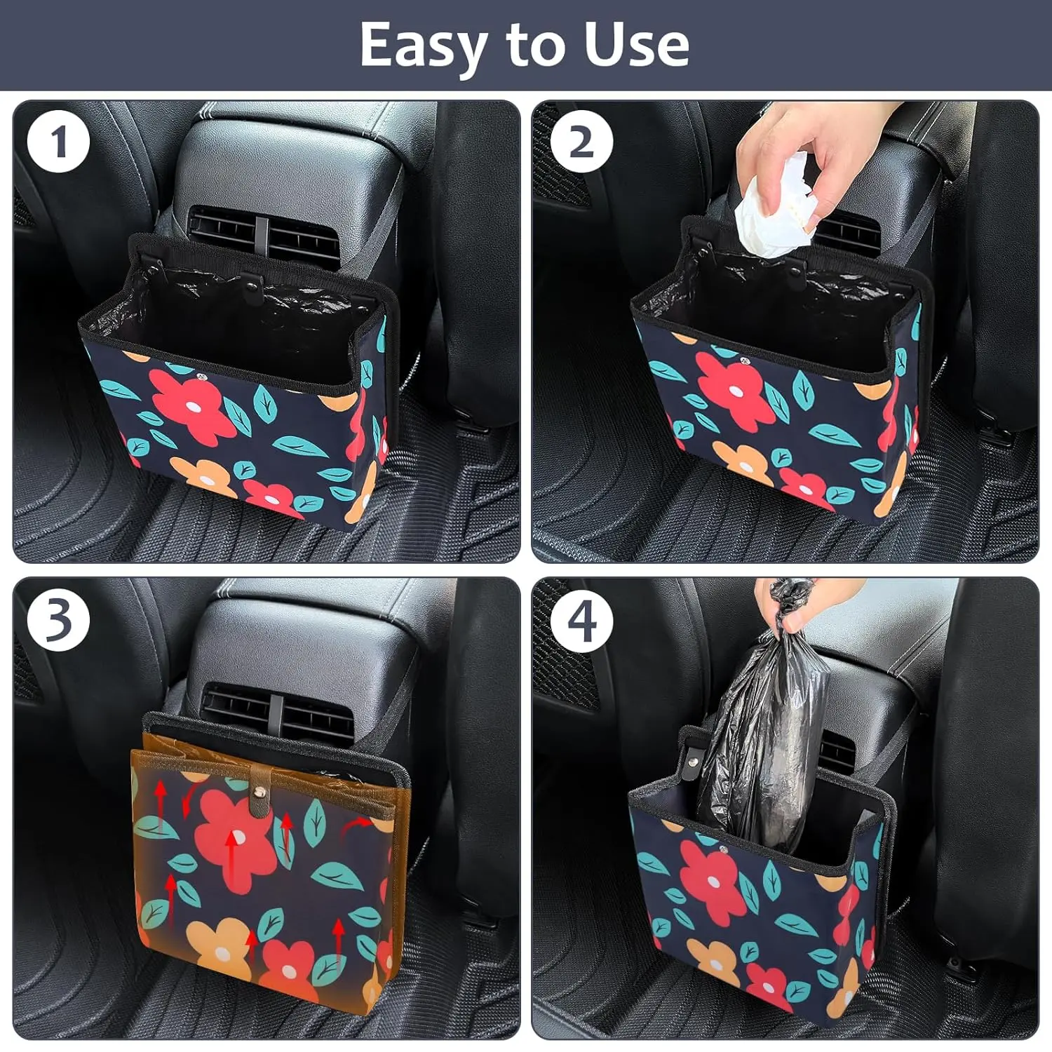 Car Trash Can with Pocket Foldable Car Trash Bin with 60 Trash Bags Car Trash Bin Seat Back Hanging Trash Bin Storage Container Suitable for SUV Truck Car