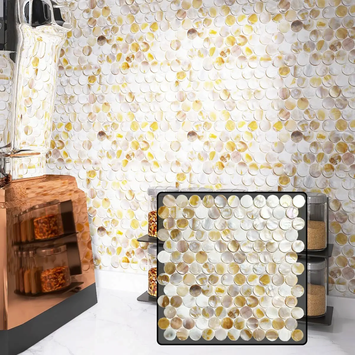 With this natural shell mosaic, the beauty of nature is integrated into the details of life, so that every space is full of unique texture and temperature~