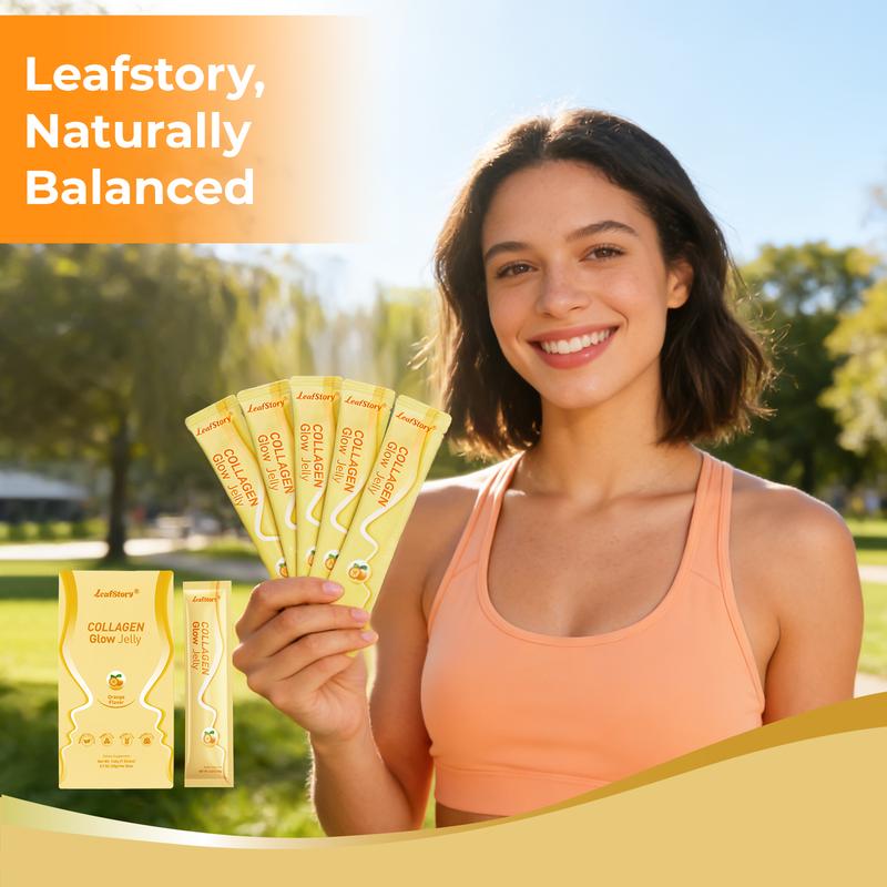 Glow from within with the LeafStory Collagen Glow Reset Jelly! This orange-flavored jelly stick is crafted to support radiant skin, healthy hair, and strong nails, while also helping stress relief. Each pack includes 7 sticks, making it perfect for your daily beauty and wellness routine. Plus, it’s sugar-free, gluten-free, non-GMO, and gelatin-free—a clean and convenient choice.