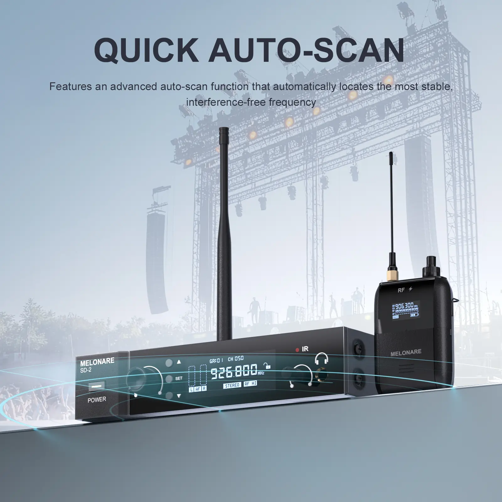 Wireless in-Ear Monitor System, Auto Scan IEM System Stereo w/Bodypack Receiver & Earphones, 50 Tunable Frequencies 164ft Range, in Ear Monitors for Musicians, Bands, Studio (SD-2-1R)