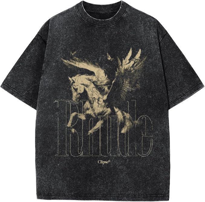 Oversize Rhude Acid Wash Shirt, Unisex Mineral Wash Tee, Streetwear & Gym, Gift for Him, Gift for Her