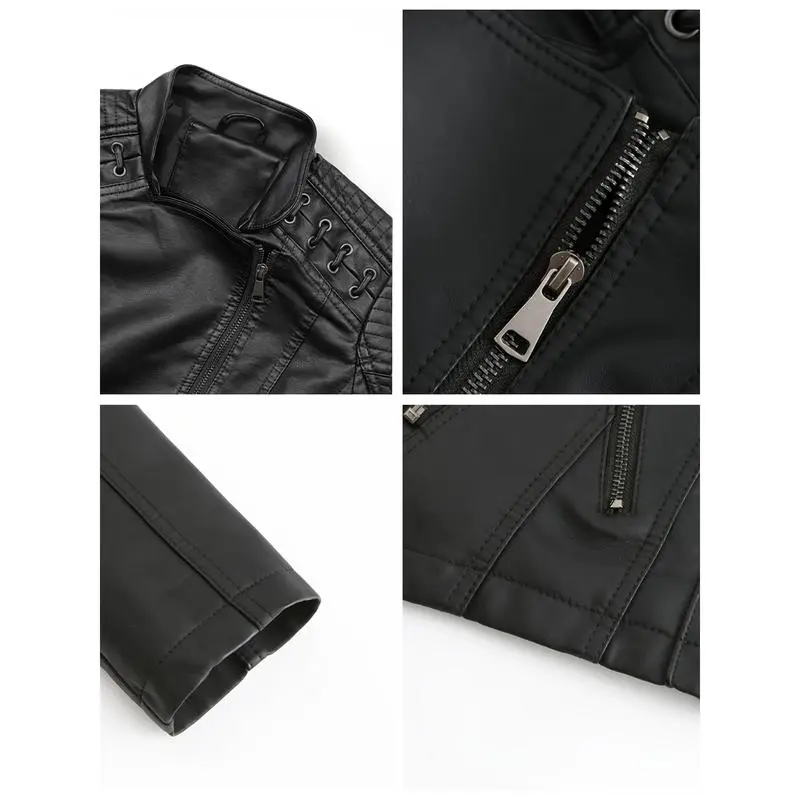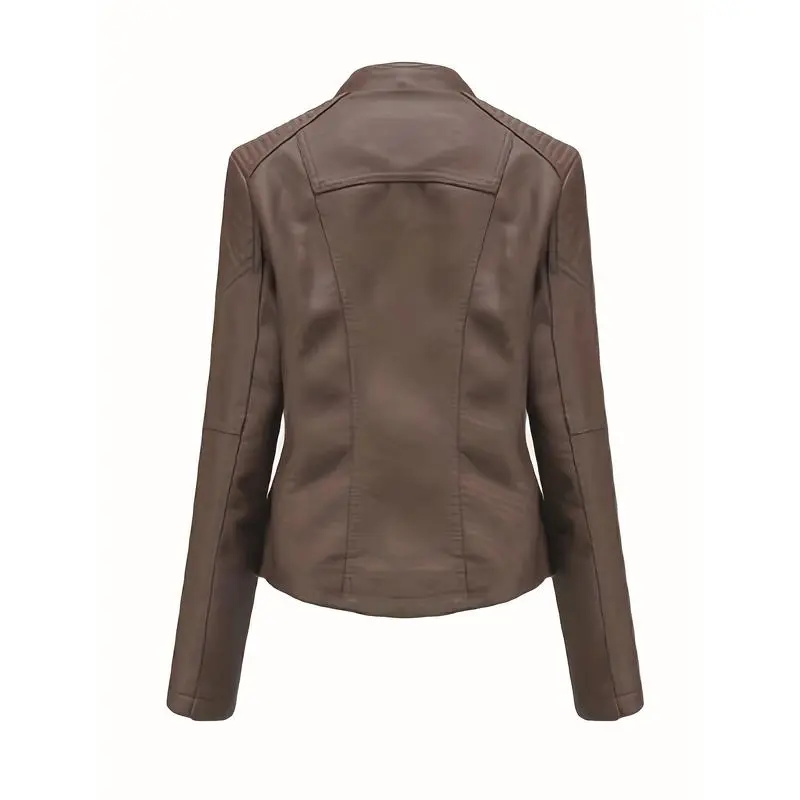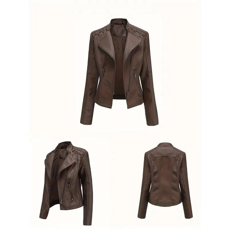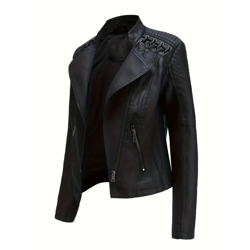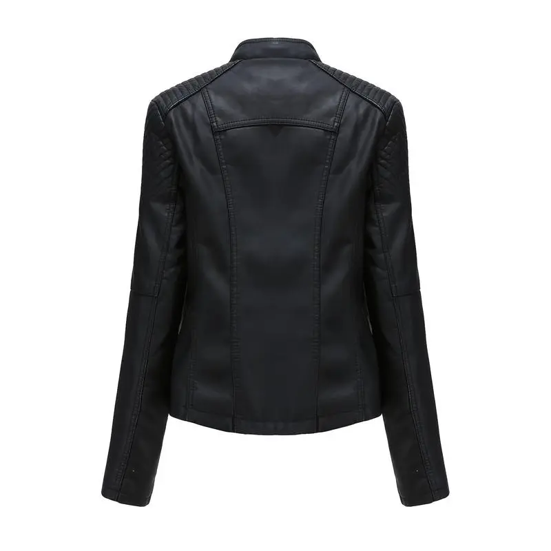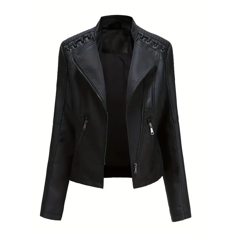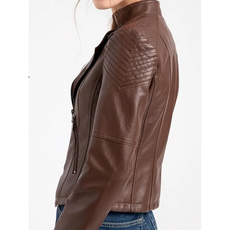 Women's Slim Fit PU Leather Moto Jacket - Stylish Waterproof Zip-Up with Multiple Pockets for Outdoor, Sports, Hiking, and Casual Wear, Motorcycle Jacket |     Decorative Stitching |     Secure Zip Closure