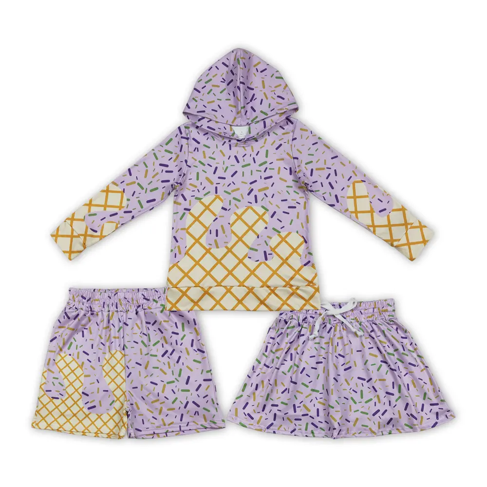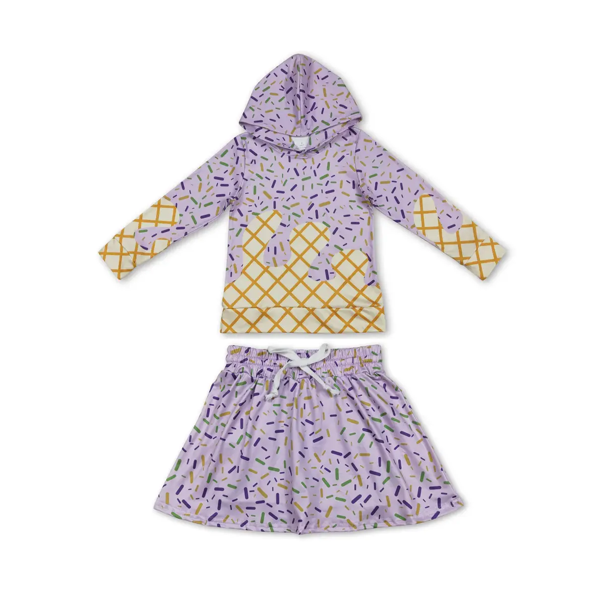 ·This kids set includes purple hoodies, ideal for game day outfits.