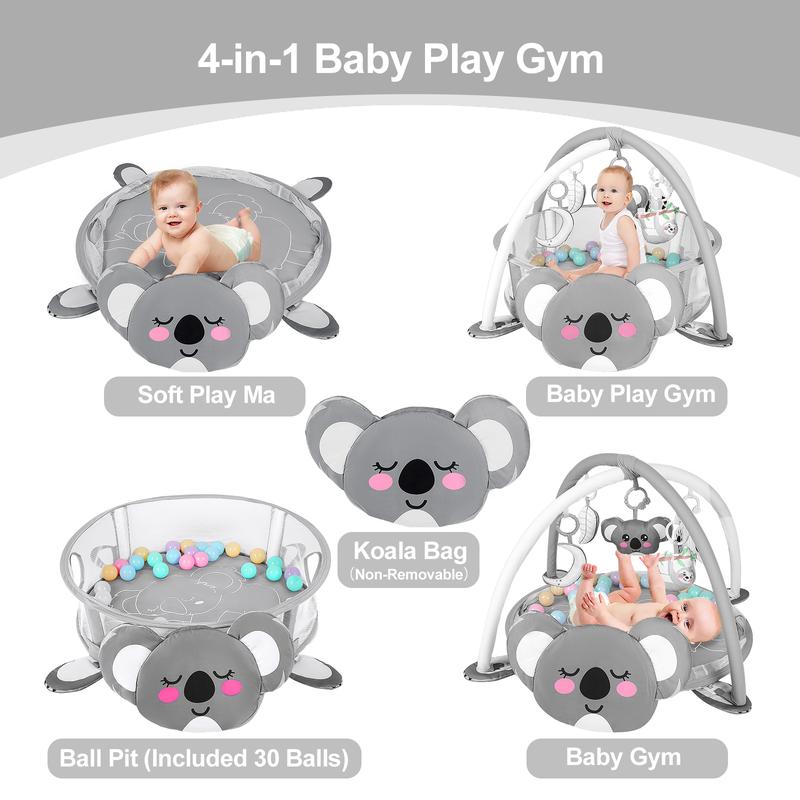 dearlomum 4-in-1 Baby Play Mat Koala Gym Tummy Time Mat for Floor Activity with 30 Balls & 5 Sensory Toys for Newborn Toddler Boy & Girl Gifts