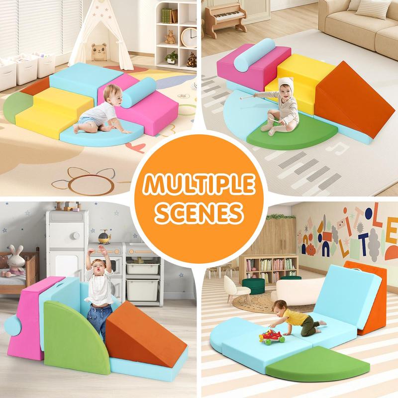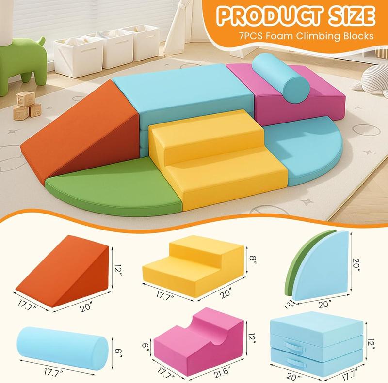 Edbuosy 7-piece Toddler Foam Climbing Toys Indoor Modular Crawling & Sliding Play Set for Toddlers Colorful Soft Play Climbing Blocks