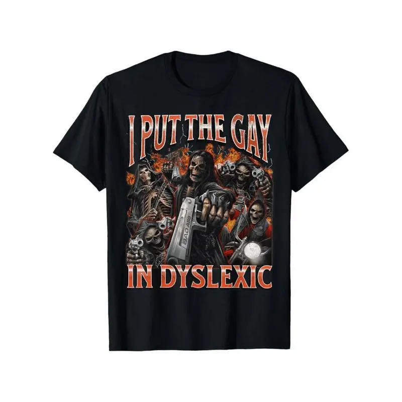 100% Cotton Horror Halloween I Put The Gay In Dyslexic Funny Hard Skeleton Meme Bootleg T-Shirt, , Comafortable Casual, Soft Breathable Short Sleeve Tee Gifts For Men Women Parents And Friends, Black S-XXXL T-Shirt For Men and Women