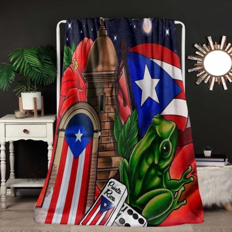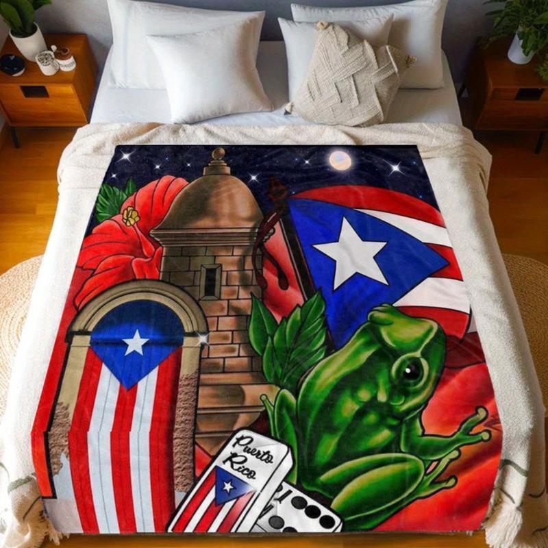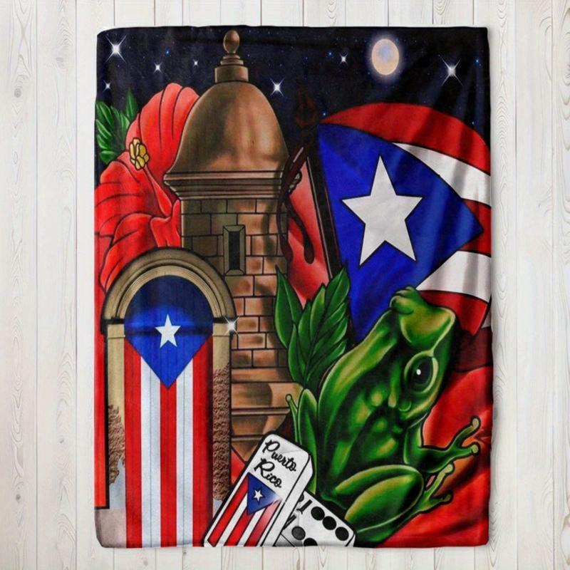 ·Warm and Vibrant Design: This furry blanket features a vibrant Puerto Rican flag design with a unique frog theme. It's perfect for adding a touch of color and warmth to any space. 🐸