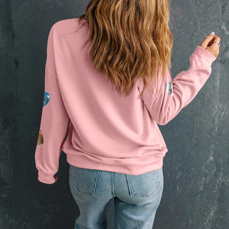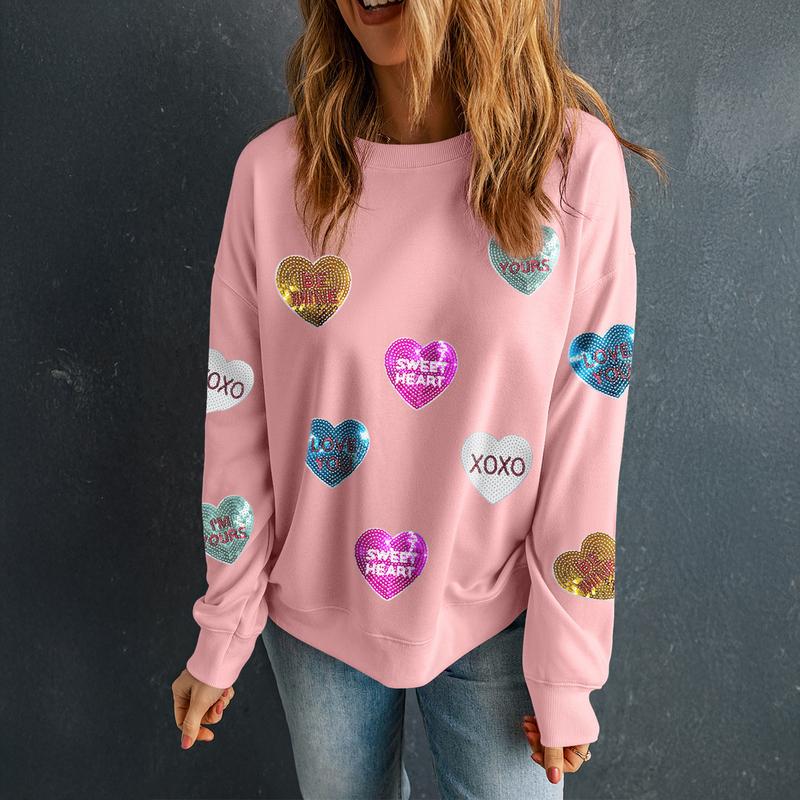 🌸 Asvivid Pink Sequin Romantic Letters Heart Graphic Valentines Sweatshirt Pullover Tops Womenswear 🌸