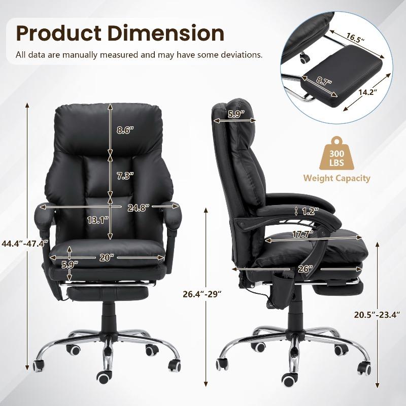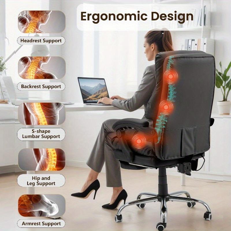 This massage office chair features 6-point vibration massage, 8 massage modes, and a built-in heating function to help relieve fatigue and keep you warm and relaxed during long working hours.
