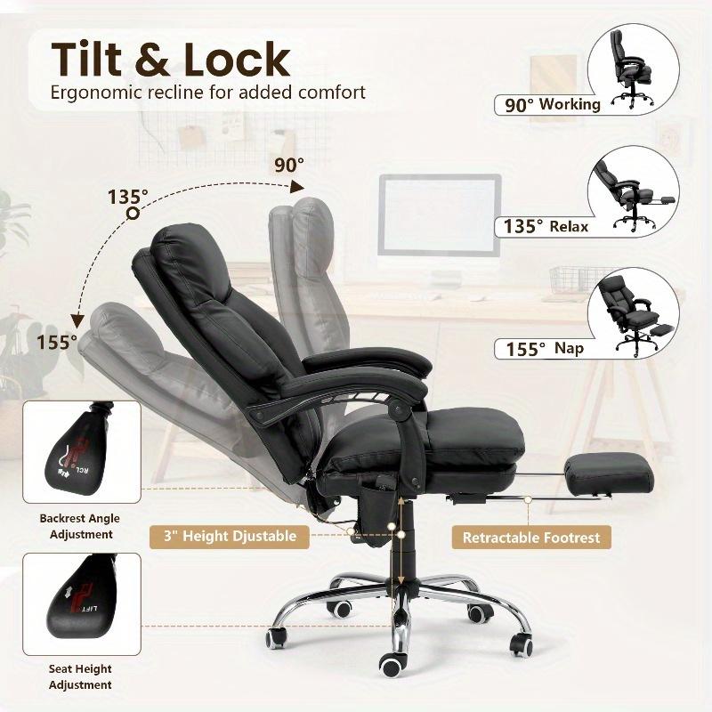 Equipped with a wide headrest, double-padded seat cushion, lumbar support, and a pull-out footrest, this chair provides full-body comfort for work, gaming, or relaxation.