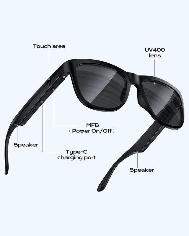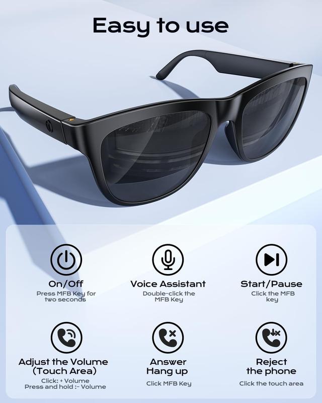 Open-Ear Audio – Enjoy music while staying aware of your surroundings. Perfect for running, biking, commuting, or just relaxing outdoors.Hands-Free Calls – Built-in HD microphones ensure crystal-clear calls, so you can stay connected without reaching for your phone.Lightweight & Comfortable – Flexible, ultra-thin frames feel like ordinary sunglasses, ideal for all-day wear during work, sports, or leisure.