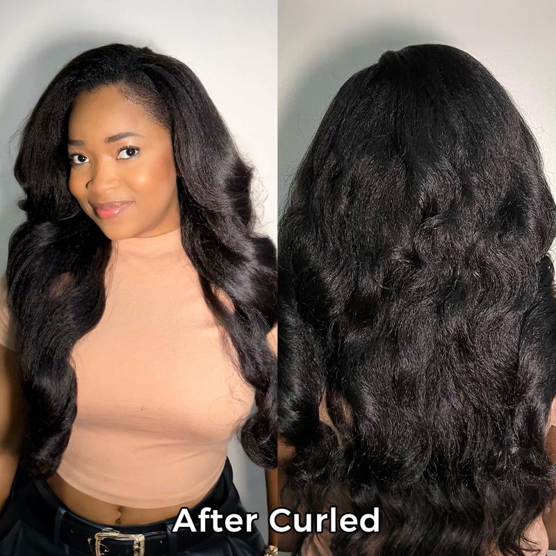 OQ HAIR EasiContour U-Part Wigs Human Hair 250% Density Kinky Straight Glueless Clip in V-Part Wigs Magic Leave Out Upgrade U-Part Wig Ready to Go Beginner Friendly