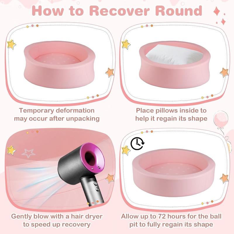 ·Wide Use & Easy to Restore Shape: More than just a ball pit, this versatile space can double as a toy storage organizer, keeping your child’s play area neat. To bring the round shape back after storage, simply insert some pillows, use a hair dryer, or wait 72 hours - the ball pit will regain its original form conveniently.