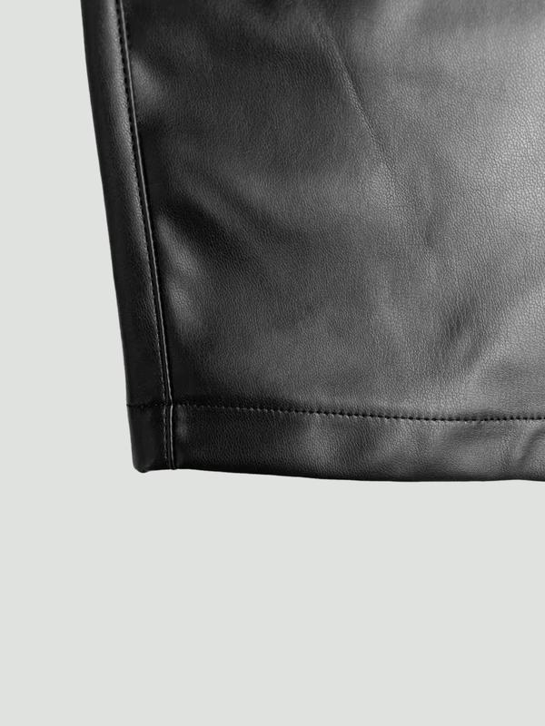 5. Women's Plain PU High-Waisted Button Closure Shorts, Fitted Casual Style, 1 Piece, Perfect for Everyday Wear