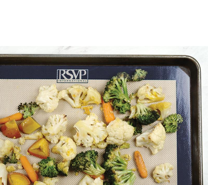 Whether you're baking cookies for a gathering or roasting vegetables for dinner, these silicone baking mats create a fuss-free experience with easy cleanup every time. The nonstick surface means you can skip extra oils and parchment, while their flexible design fits half sheet pans and rolls up for compact storage. From RSVP.