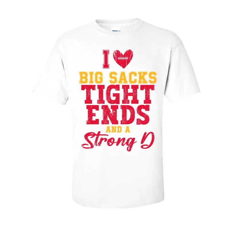 I Love Big Sacks Tight Ends and a Strong D Football Fan T-Shirt for Men Women