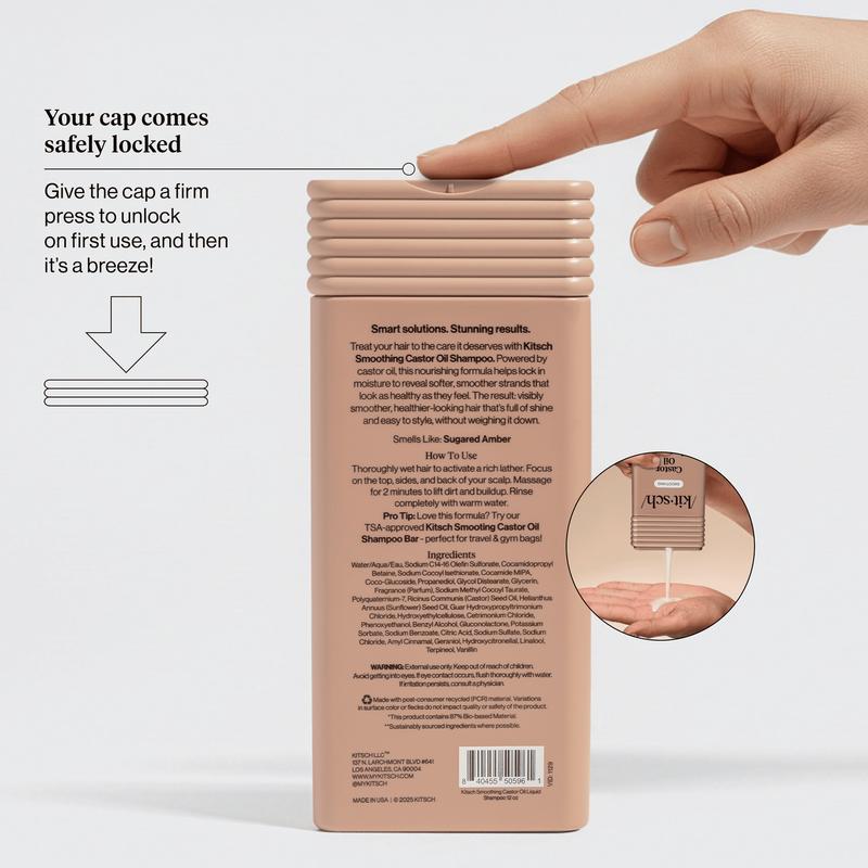 Pro Tip: If you love this formula, try our travel friendly, TSA-approved Kitsch Smoothing Castor Oil Solid Shampoo & Conditioner Combo - perfect for travel & gym bags!