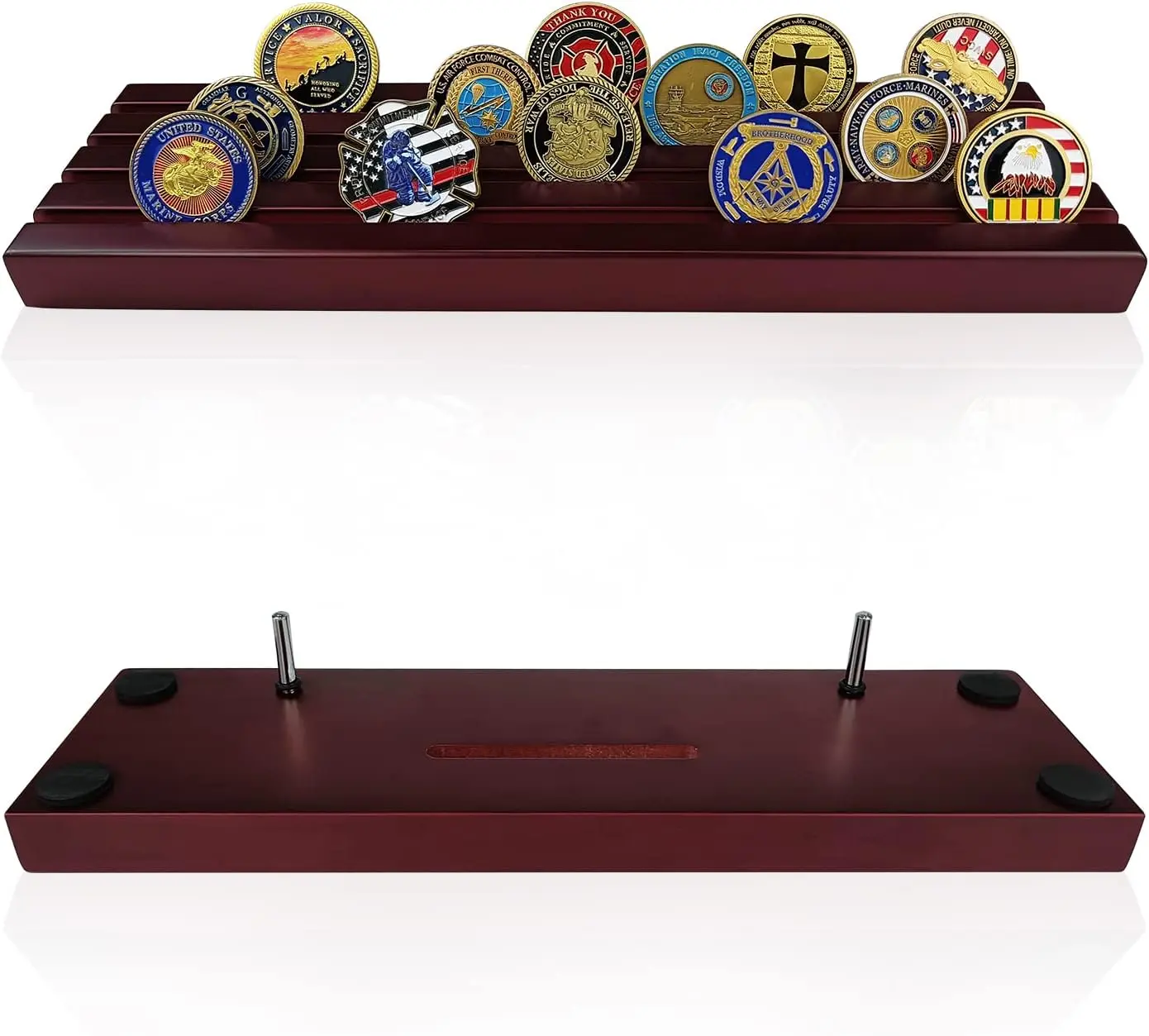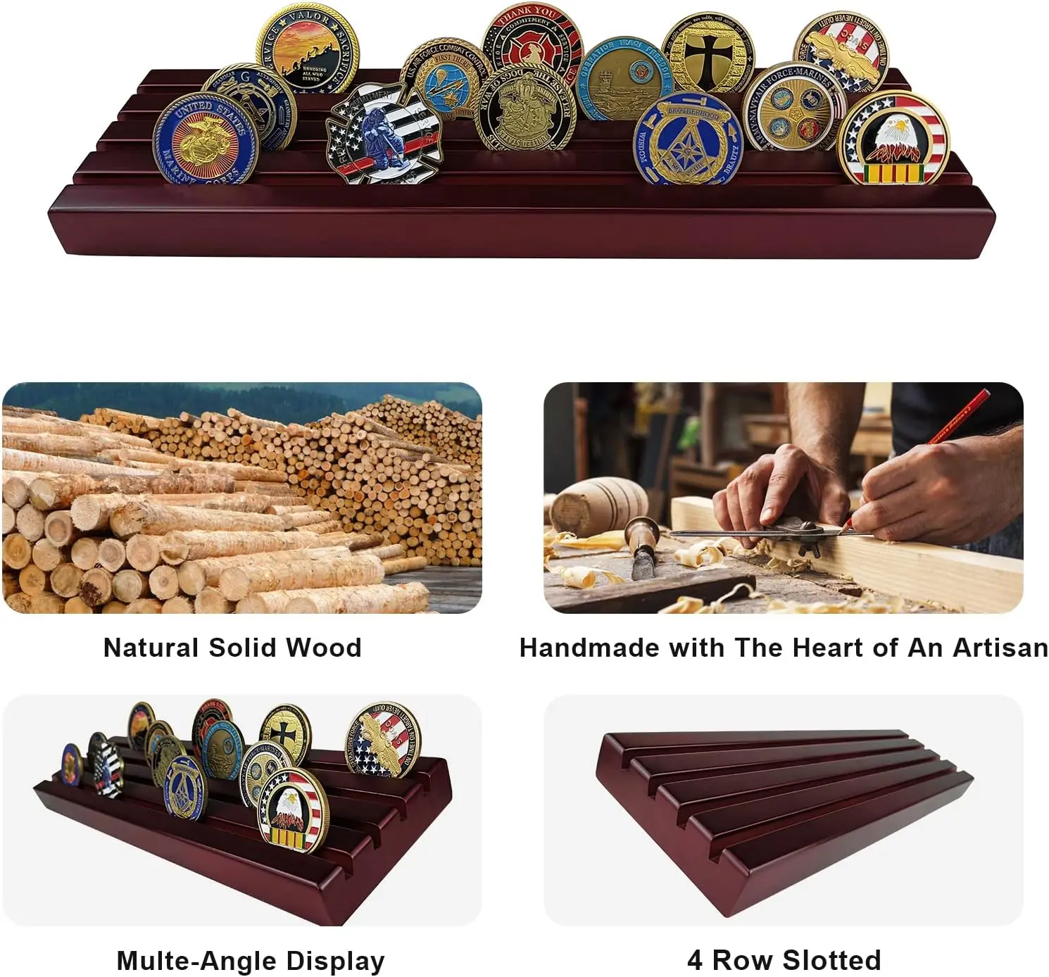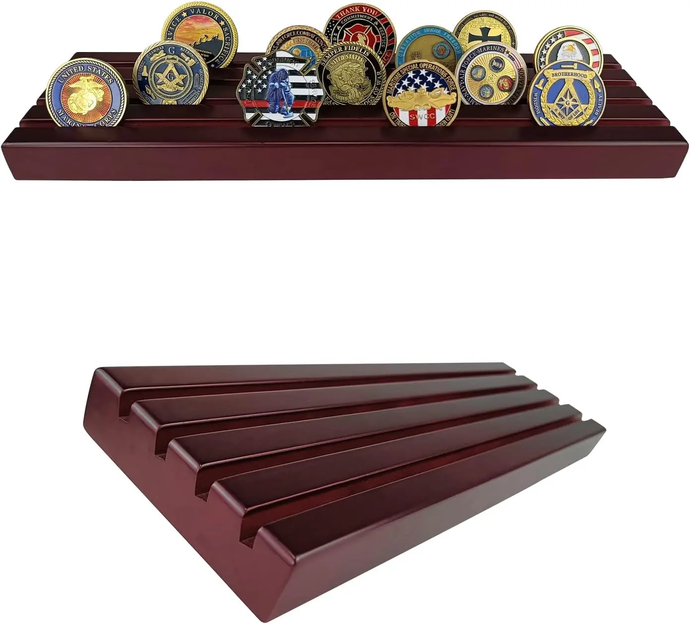 ·CLASSIC DESIGN: 4 Rows military challenge coins stand that provide convenient inclination to show each row with coins from any angle,this challenge coin rack can hold 30 coins depending on your coin sizes. A great way to showcase coins of various size, military challenge coins, custom coins or casino chips