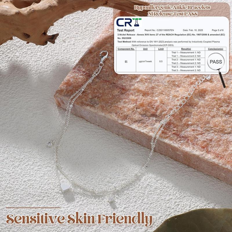 ·Sterling Silver Anklets for Women: Crafted with lead-free and nickel-free S925 silver, ideal for sensitive skin. Waterproof construction withstands beach activities like swimming or sand sports without tarnishing.