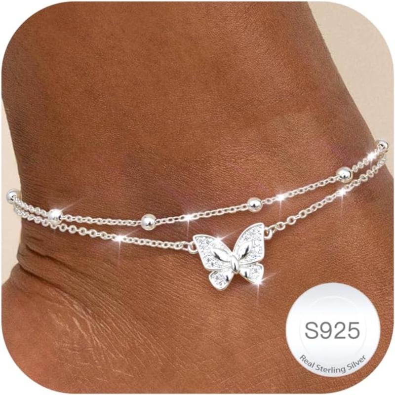 ·Versatile Style Options: 4 designs: Butterfly (casual), Heart (romantic), Beaded Sphere (minimalist), and Cubic Zirconia (elegant). Fits ankles 18-26.5cm for seamless pairing with sandals or sneakers."