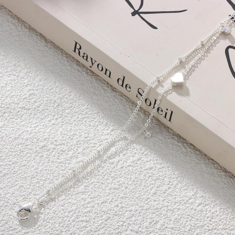 ·Double-Layer S925 Silver Anklet: Crafted with two interlocking chains and a single secure lobster clasp, this tangle-resistant design combines effortless wearability with lasting elegance. The dual-layer structure maintains neat alignment whether you're strolling Brighton's pebble beaches or attending garden parties.