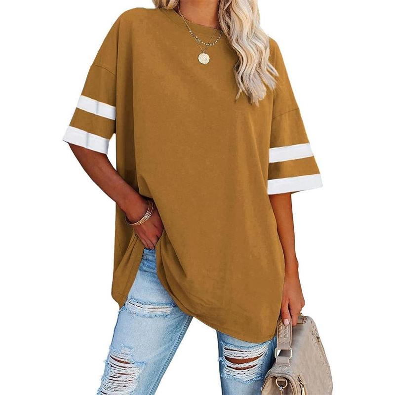 Womens Oversized Tees Loose T Shirts Half Sleeve Crew Neck Color Block Cotton Tunic Tops
