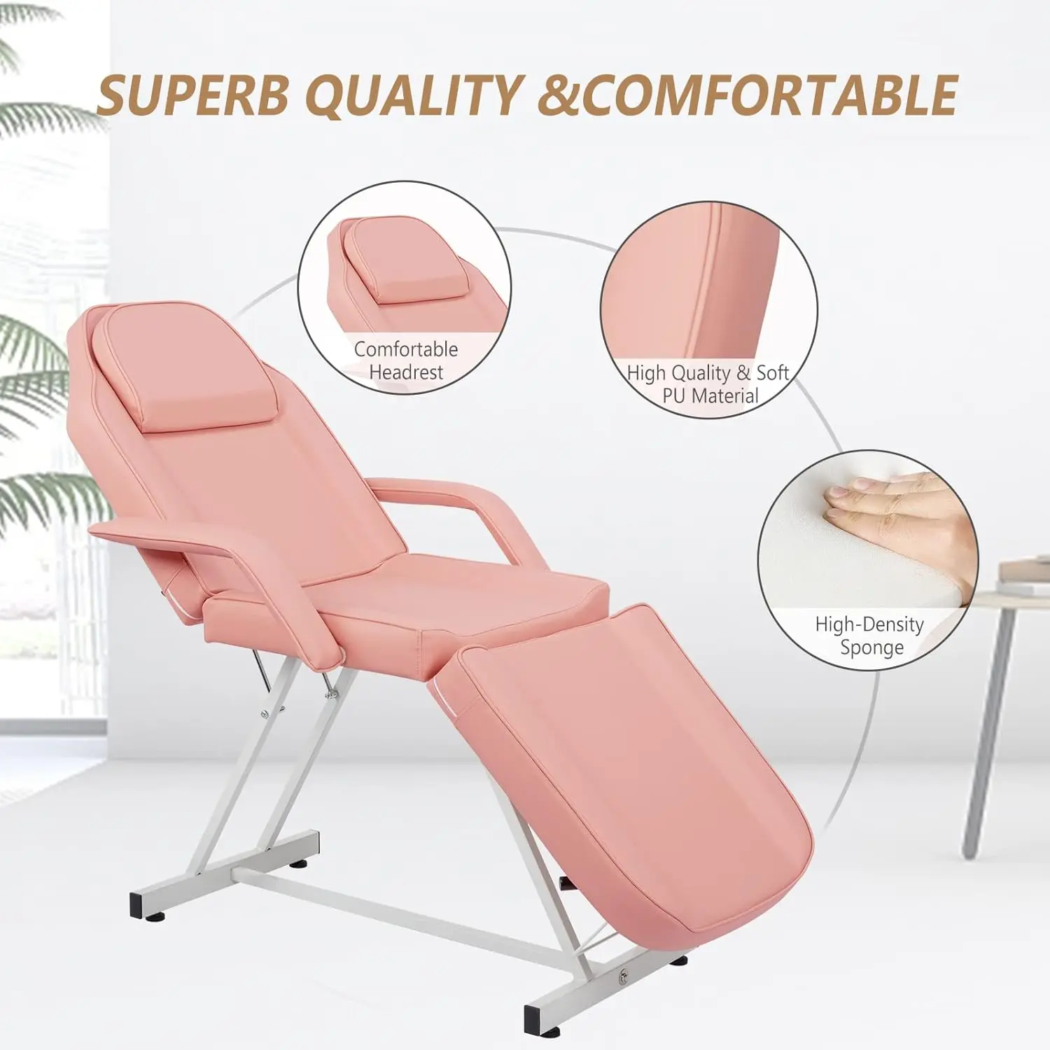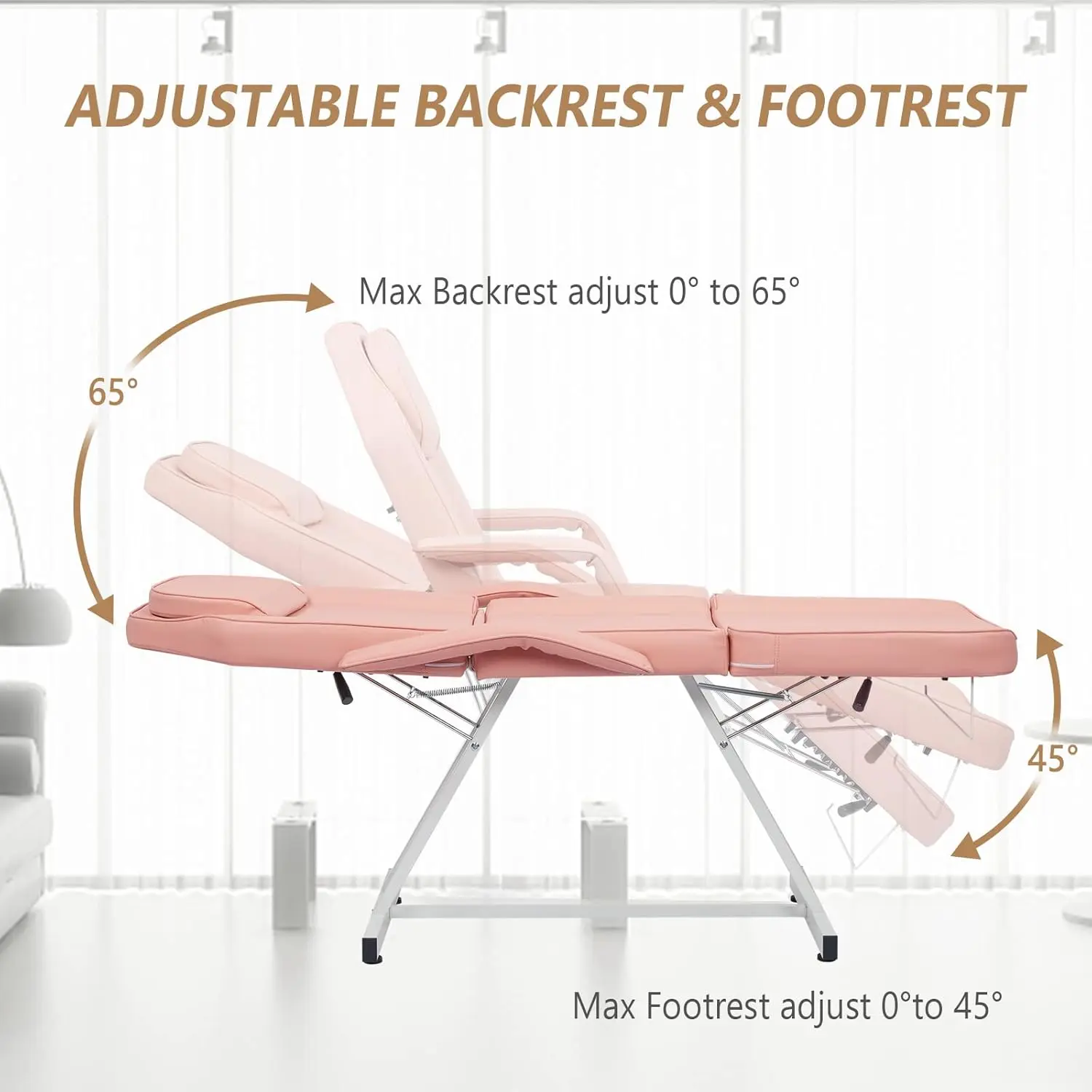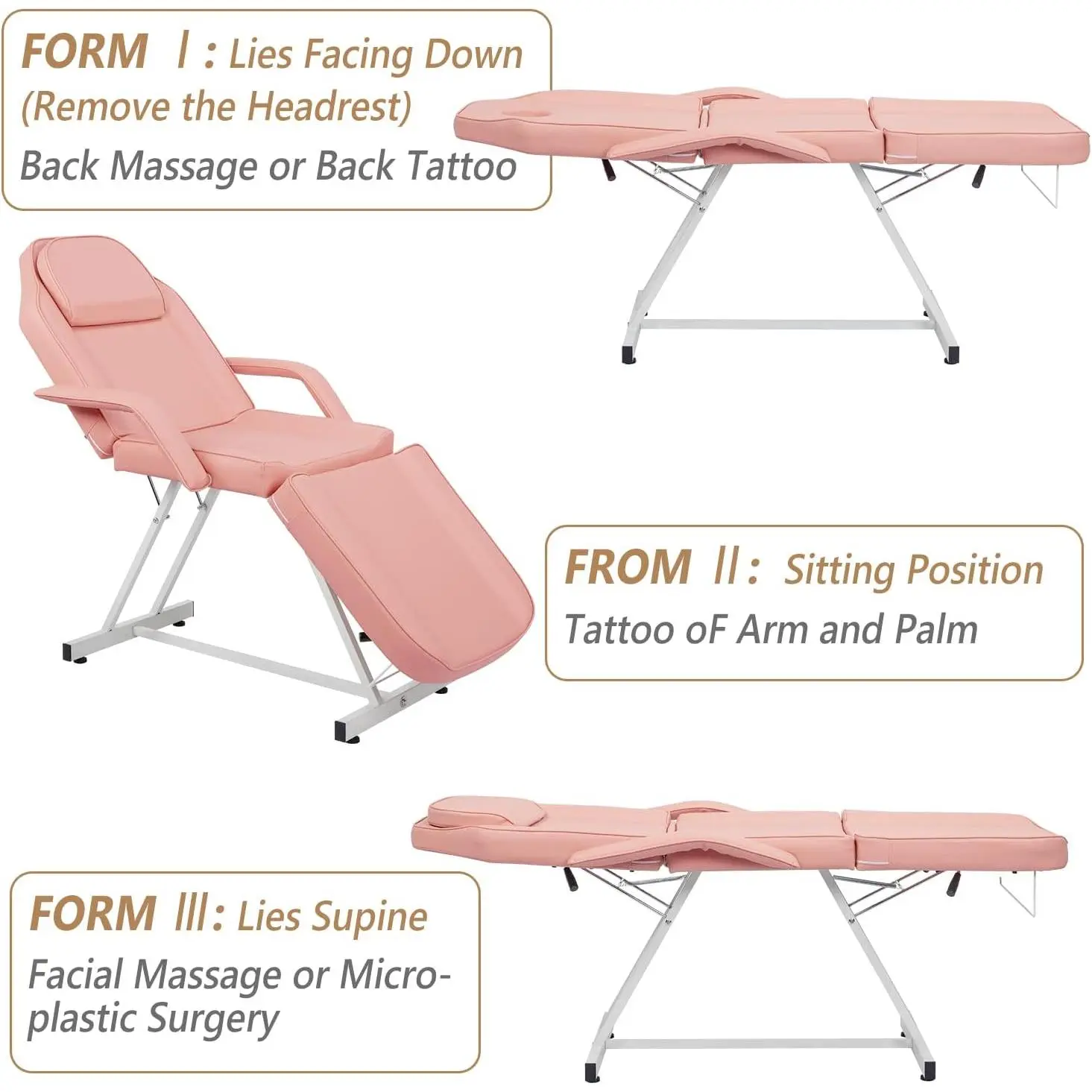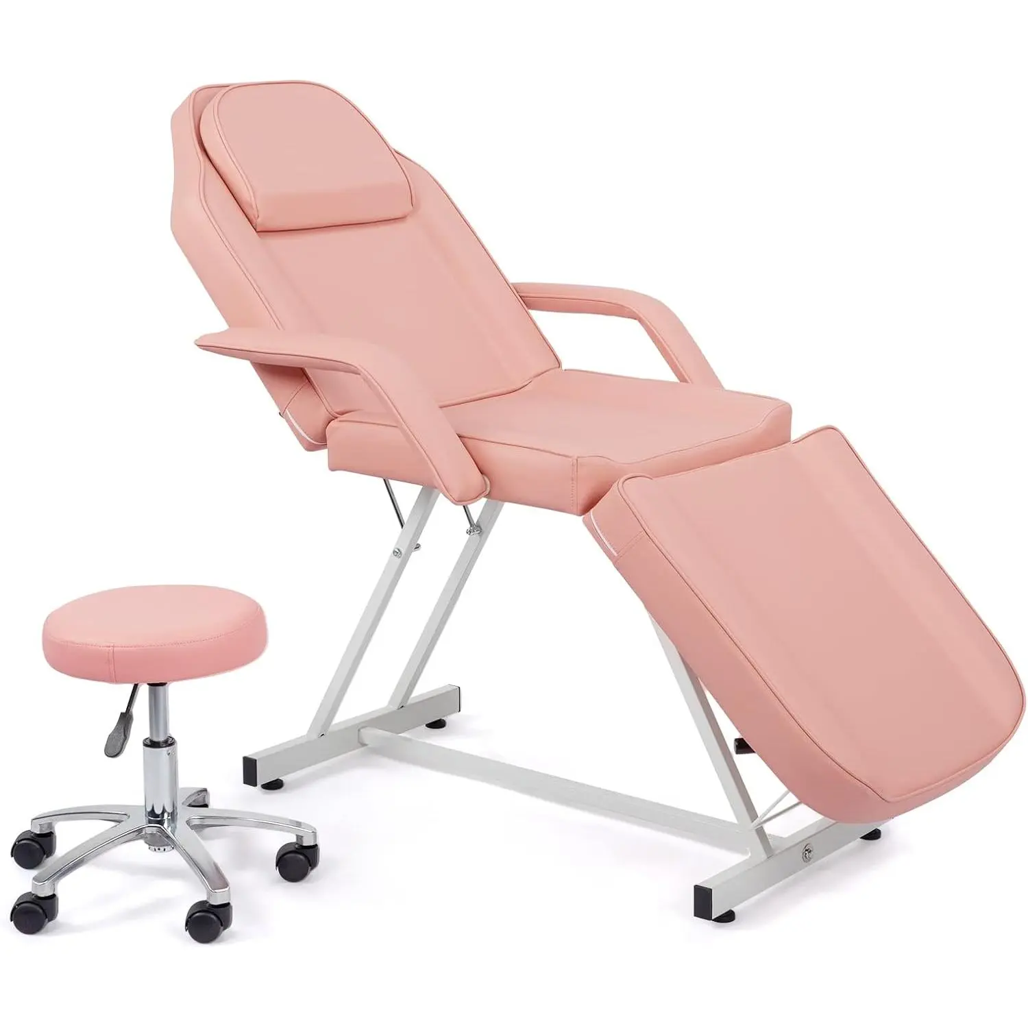 Wide Usage: Featured by 3-section design, adjustable backrest and leg support, and can lie flat on a chair. And you can put your arms on the side armrests to reduce stress. It is perfect for massages, facials, eyebrow waxing or threading, tattoos and other salon needs
