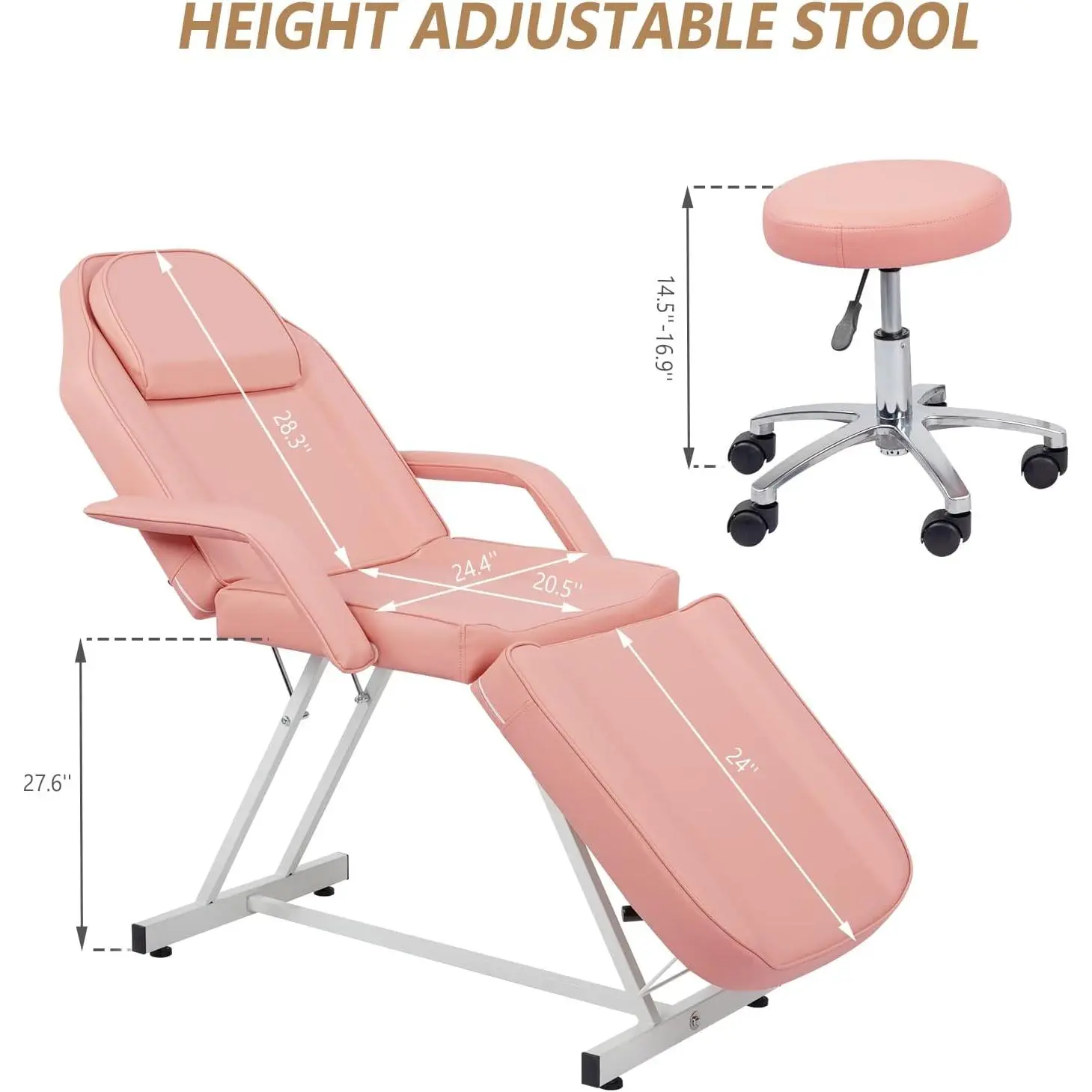 Upgraded Hydraulic Rotating Stool: Equipped with a 360-degree swivel stool, which is adjustable in height. And come with a cushioned, faux-leather seat, providing restriction-free, comfort as you work on your clients