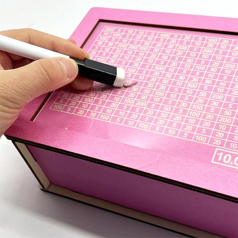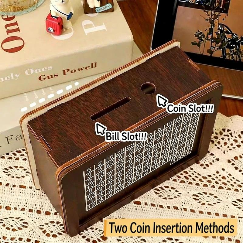 This piggy bank is ideal for anyone looking to save money systematically. The wooden construction ensures durability, while the markings provide a clear visual guide for your savings journey. Start saving today and reach your financial goals with this practical savings box.