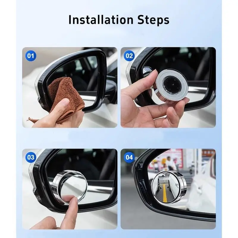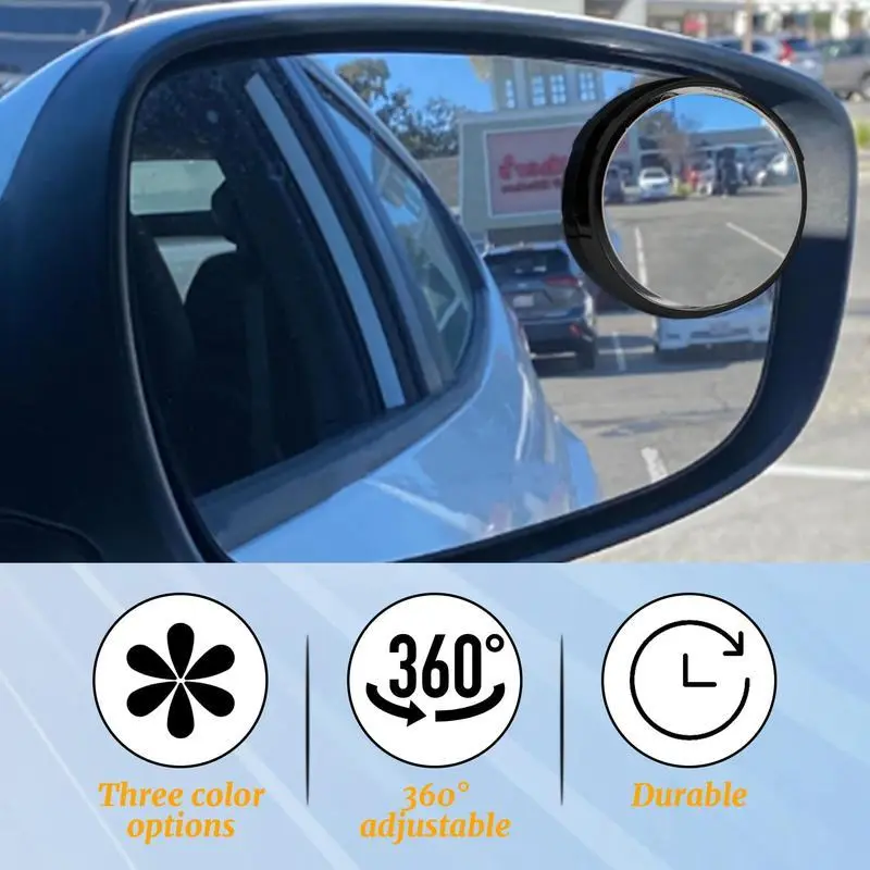 2PCS Round HD Glass Convex Rear View Mirror with Frame, 360 Wide Angle Side View Mirror Accessories with Self Adhesive Back for Car, SUV and Trucks