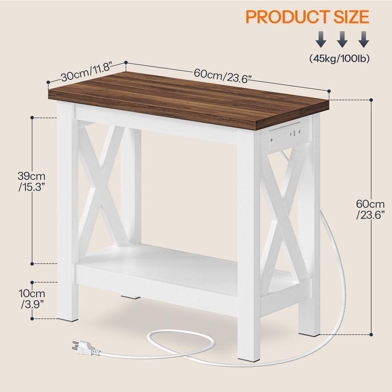·Open Design: Features a practical 2-tier open storage structure. The end table's narrow profile allows it to fit easily into small places, suitable for use as a bedroom nightstand or a living room organizer for books, remote controls, and other daily items