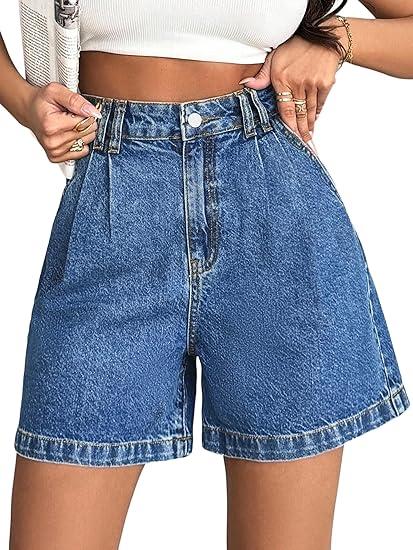 ·Denim Shorts: Mid/High-rise, wide leg, Pockets both sides and back, cute, lightweight, clean Fit Style, loose fitting, casual, young, summer trendy 2026, beach vacation.