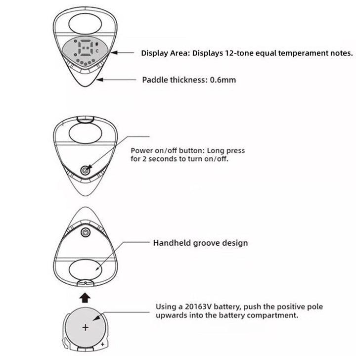 This innovative 2-in-1 tool combines a guitar pick and a precise tuner. It breaks away from bulky traditional tuners, offering a compact, all-in-one solution. Tune your instrument anytime, anywhere. The clear LCD display shows 12-tone equal temperament and tuning indicators, ensuring accuracy.