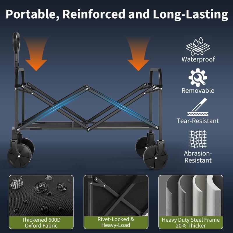 · ✅ Your versatile foldable cart – The all-rounder for family & leisure: This foldable cart is your universal helper: as a robust foldable transport cart for shopping, a practical travel buggy at the beach, or a garden handcart with sack truck wheels. The foldable cart with integrated brake offers safety on any surface. Whether as a camping cart, garden cart, or transport aid with wheels – with this foldable handcart you are well equipped for all tasks.