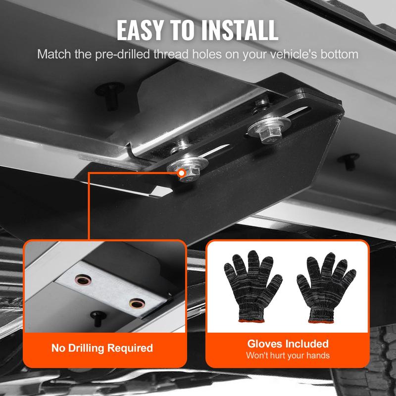• Hassle-Free Installation: This running boards for trucks is designed for a easy installation on specified models, requiring only bolts, washers, and nuts for attachment without the need for drilling. Its anti-edge design prevents scratches, and included gloves ensure hand protection during installation.