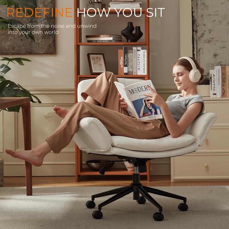 ·ULTIMATE COMFORT- Experience all-day support with our enhanced high backrest that perfectly cradles your spine. The thickened lumbar cushion delivers targeted pressure relief to your lower back, while the premium double-layered seat pad with slow-rebound memory foam top with a high-resilience support base. Engineered for prolonged sitting sessions, this criss cross chair with wheels keeps you comfortably focused whether working, gaming, or relaxing for hours.