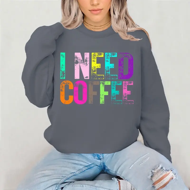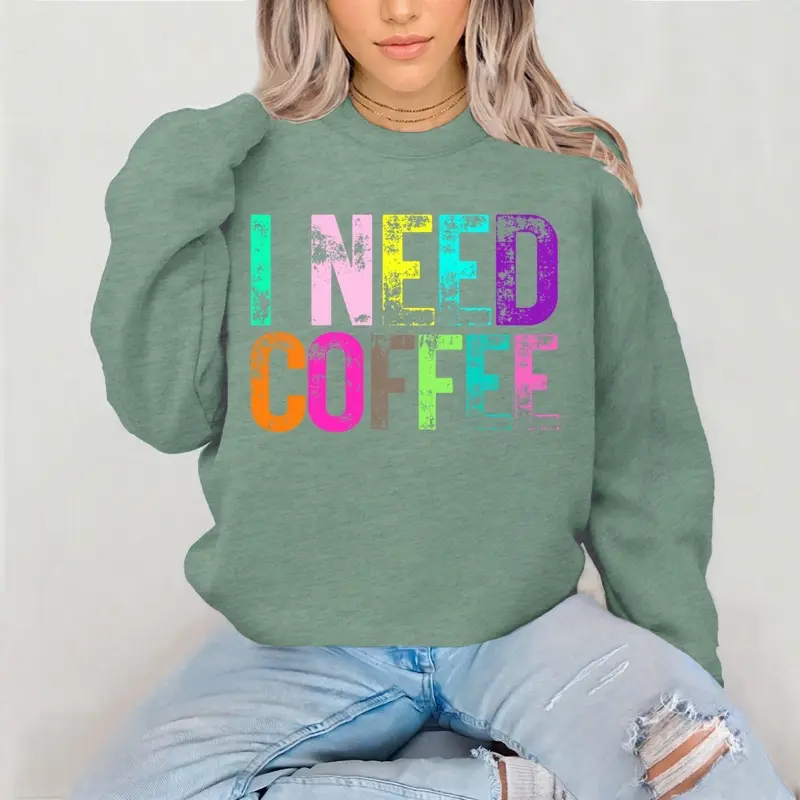 I need Coffee Crewneck Sweatshirt Gildan Everyday Style Super Soft Unisex Fit Streetwear Graphic Top warm Womenswear Casual Printed Long Sleeved coffee