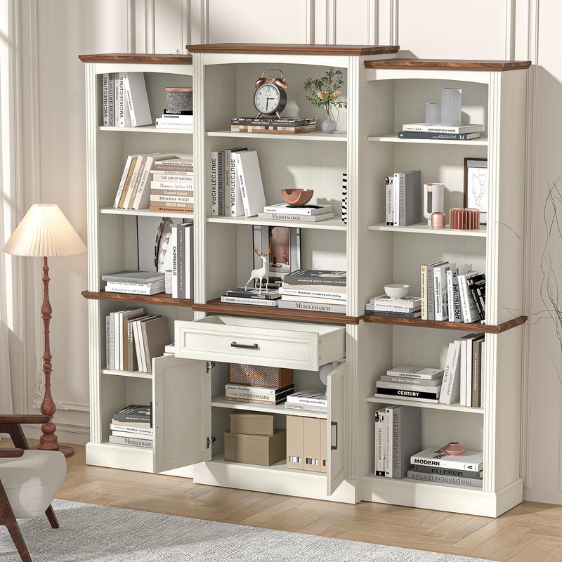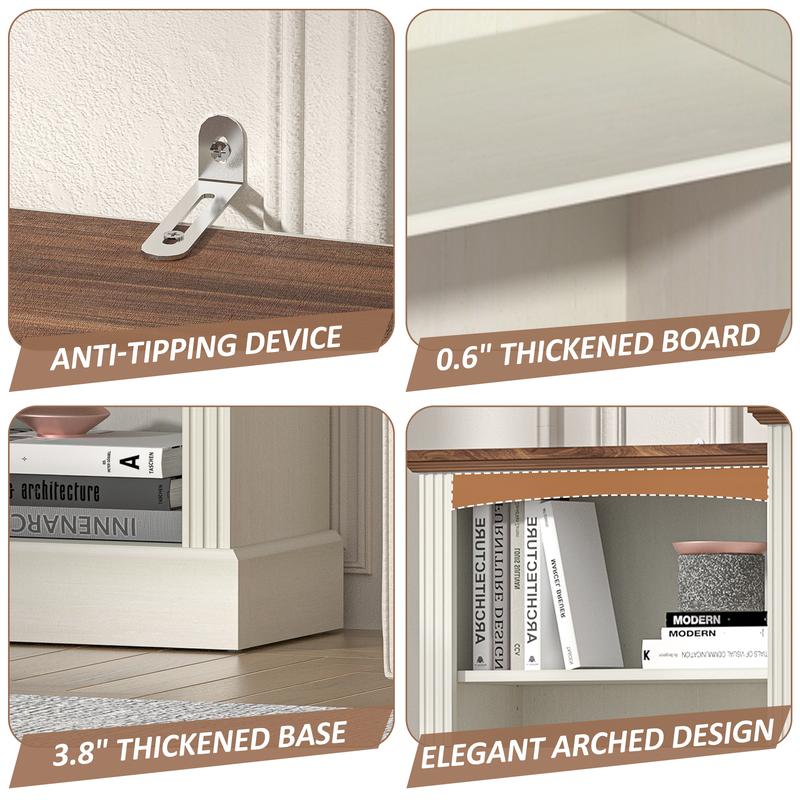 ·【Farmhouse Bookshelf with Doors】 This freestanding 70' tall bookshelf combines farmhouse design with modern functionality. The top has a slight arch design, which makes the whole look more beautiful. It can display various items from books to board games and ornaments for home office, living room.