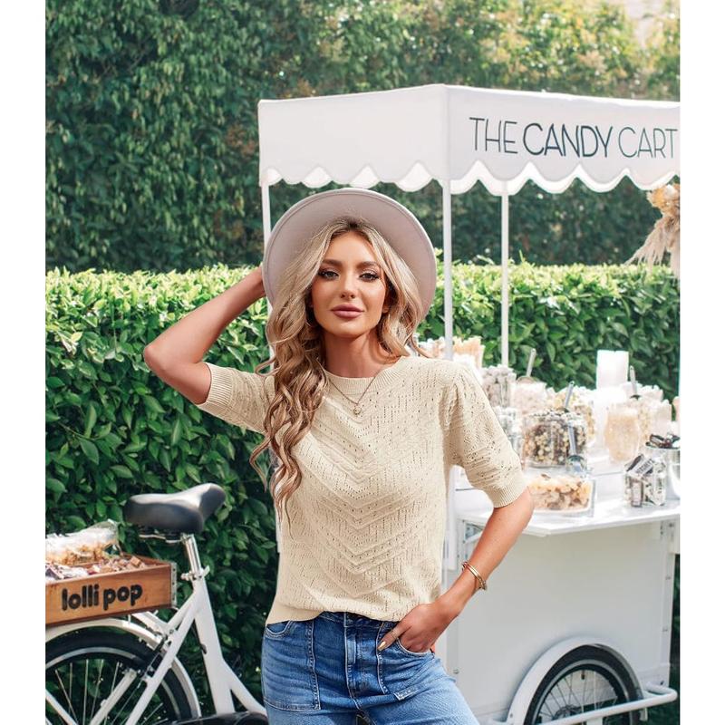 Cutest little short sleeve Summer Sweater: #summersweater #lightweightsweater #shortsleeve #tiktokshopcreatorpicks