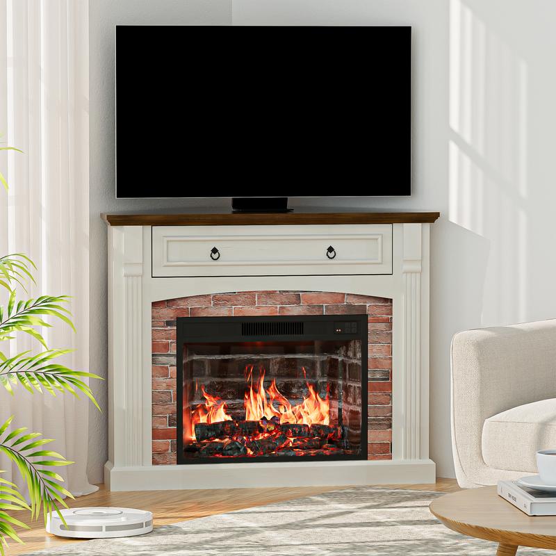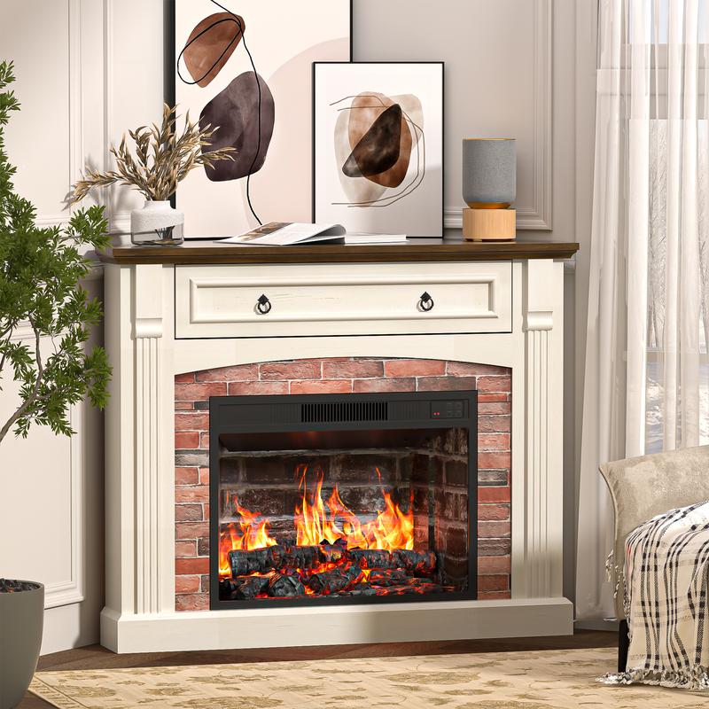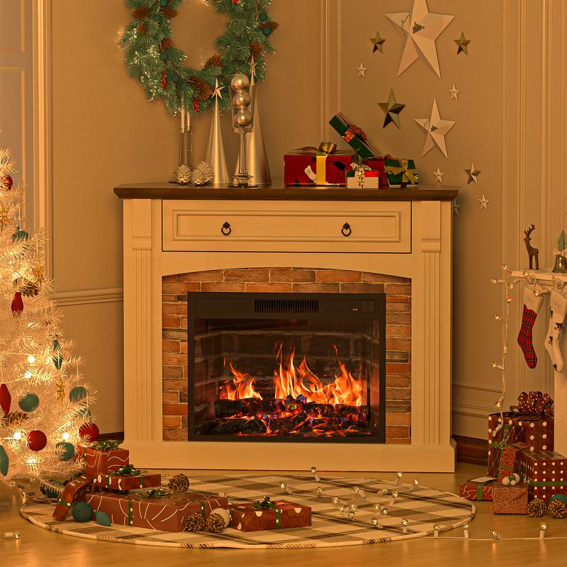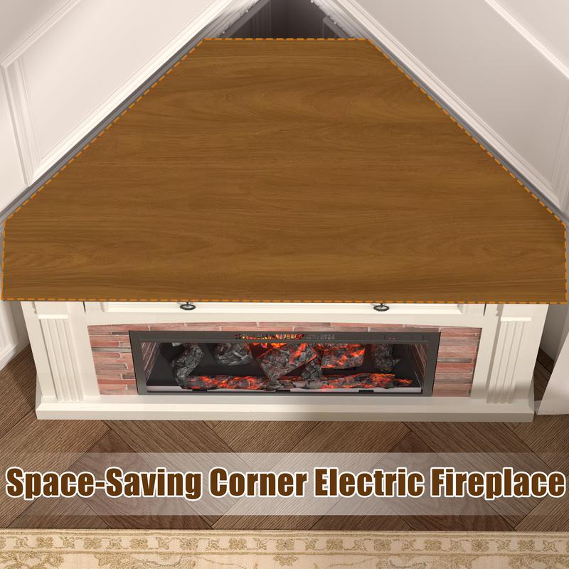·【Corner Electric Fireplace】The fireplace with wooden mantel dimension: 19.69''D x 38.94''W x 31.22''H. This electric fireplace mantel is the best choice for small spaces. Its perfect design maximizes unused corners while providing full fireplace functionality.