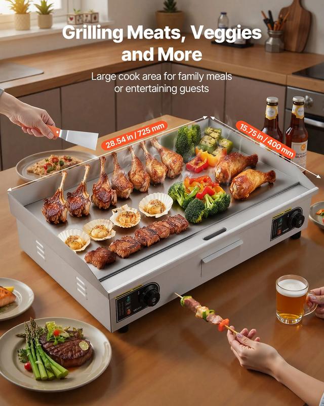 ·Powerful Large Griddle: This 4400W commercial electric griddle features a 28.54 x 15.75 inch / 725 x 400 mm cooking surface and a 0.31 inch / 8 mm thick iron plate. Even heat distribution ensures thorough cooking, allowing you to prepare more food at once