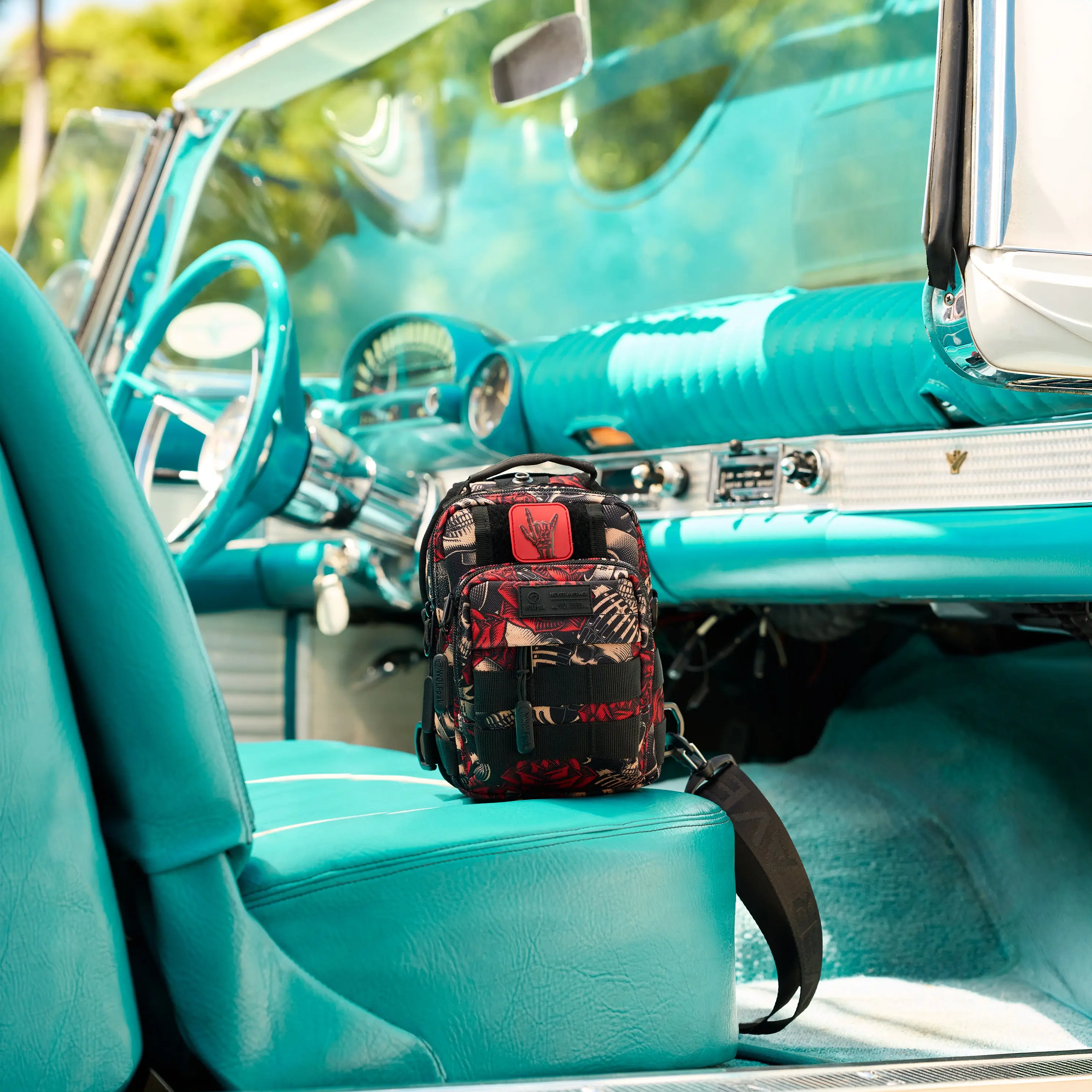 SLING DAYPACK Built with durable, weather-resistant nylon, our tactical crossbody sling bag offers ample storage, internal organization pockets, and a YKK extra thick dual-zipper design for quick access to your essentials. Whether worn as a back sling, chest sling, or shoulder bag, it’s a versatile option for both men and women.