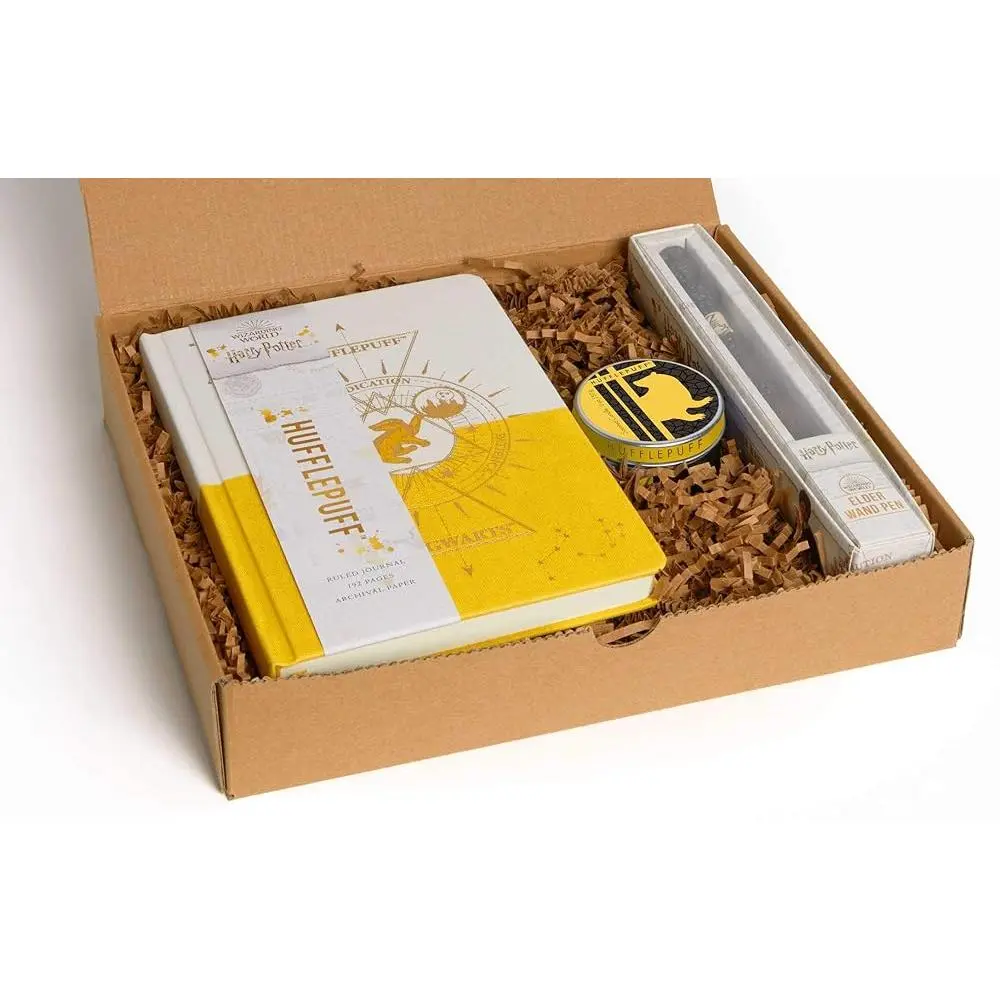 * Hufflepuff™ Constellation Journal: This elegant hardcover journal features a linen cover printed with a beautiful design of HOGWARTS™ Hufflepuff™ house with gold foil accents. This journal includes 192 ruled pages, a ribbon placeholder, and an elastic band.