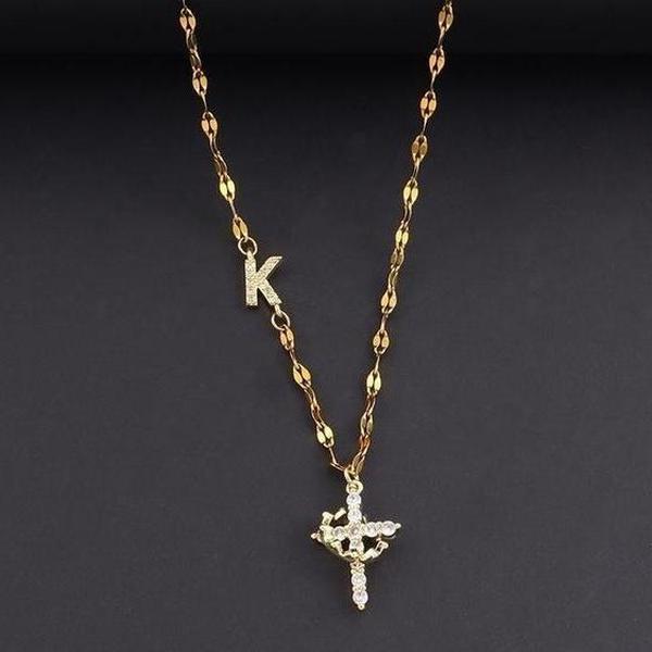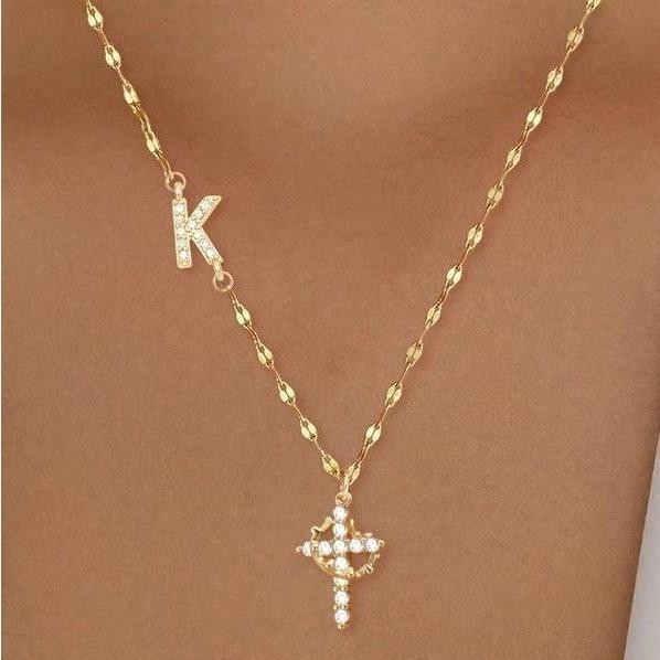 ·Pendant: Zirconia cross crown initial