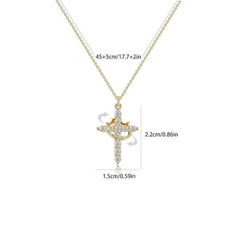 5. Women's Stainless Steel Necklace with Zirconia Cross Crown Initial Pendant Adjustable 45+5cm Casual Fashion Lip Chain Jewelry for All Seasons