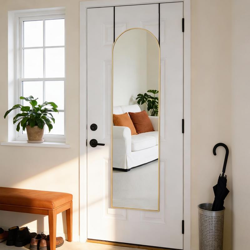 ·Stylish Arched Frame: The mirror boasts an elegant design, making it a decorative piece. Suitable for wall mounting or door hanging. Adds a modern touch to your space. 🎨