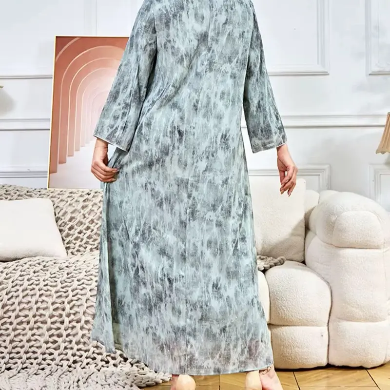 This luxury abaya features an elegant marble-style design with a graceful and modern look.