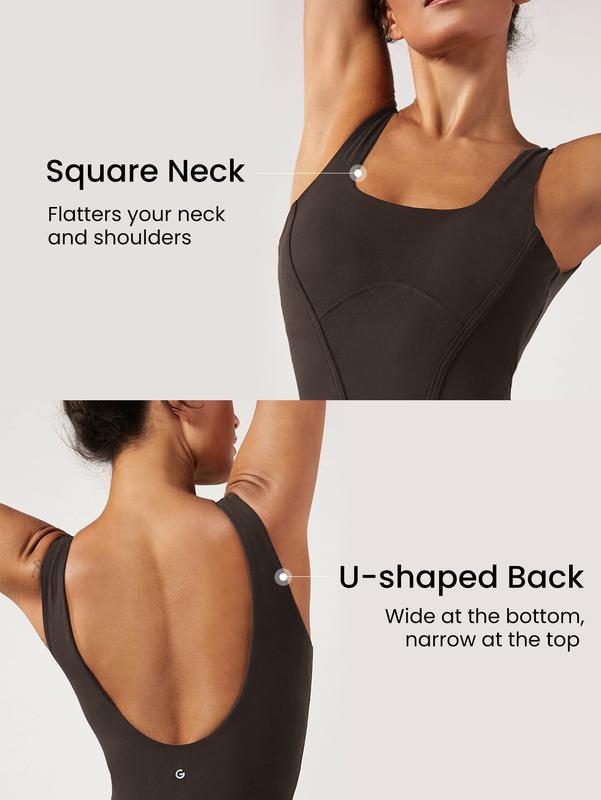 Tips: Due to packing and shipping, your FeatherFit item may arrive creased. This can be easily removed by washing or steaming before wear. Pro Tip: Designed for light support and low-impact activities, from Downward Dog to dog walking. Gear up like a gym goddess in our one-and-stun bodysuit, featuring a trendy square neckline, tummy-control waist, dramatic U-shaped back, and body-contouring seams that flaunt and flatter.