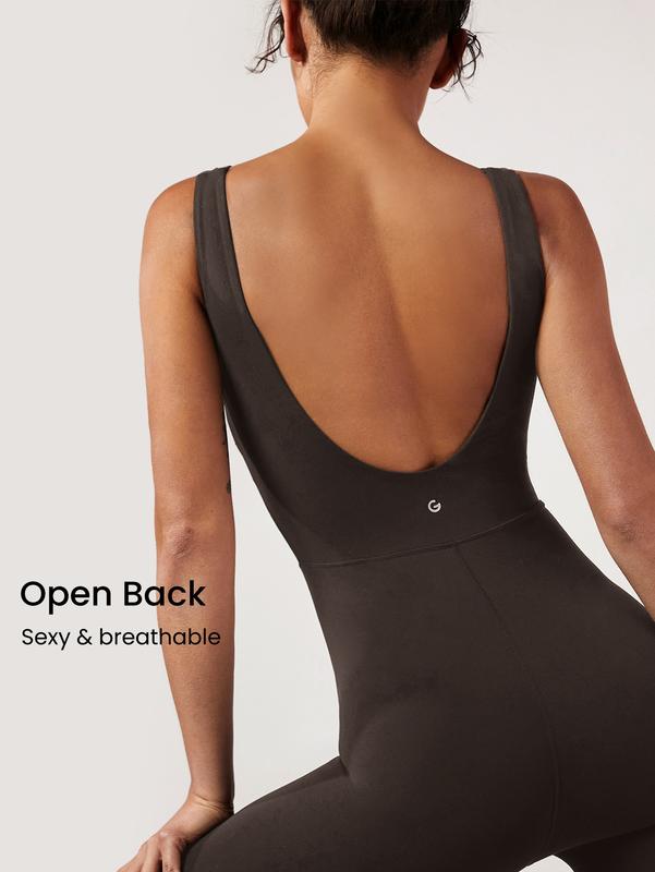 GLOWMODE 24" FeatherFit Tummy Control Open Back Gym Yoga Sports Jumpsuit Bodysuit  Elegant For Woman
