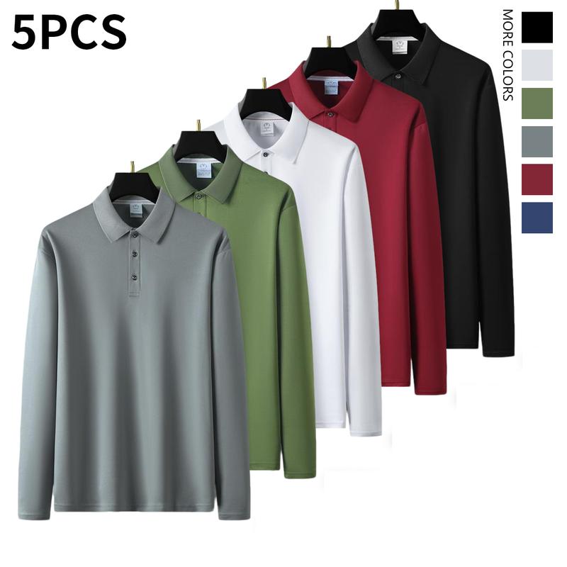 5. Spring and autumn long-sleeved polo shirt with turned-down collar. Solid color, glossy fabric, multiple colors. Polo shirt for casual sports wear for men. Perfect for traveling and work.